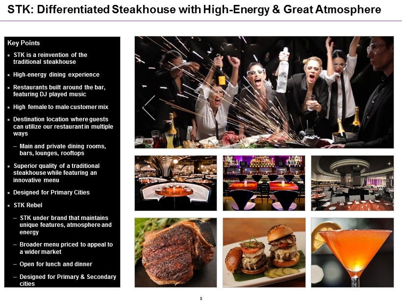Internationally Recognized Restaurant Brands Established Globally Complementary Offerings High - Energy Restaurants High Quality High Volume High Margin 7