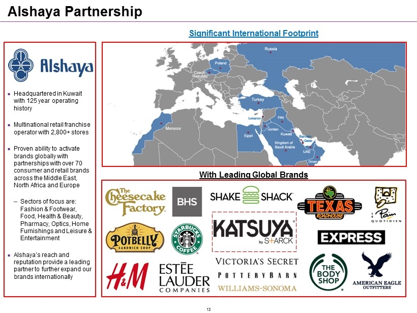 Alshaya Partnership With Leading Global Brands Headquartered in Kuwait with 125 year operating history Multinational retail franchise operator with 2,800+ stores Proven ability to activate brands globally with partnerships with over 70 consumer and retail brands across the Middle East, North Africa and Europe ─ Sectors of focus are: Fashion & Footwear, Food, Health & Beauty, Pharmacy, Optics, Home Furnishings and Leisure & Entertainment Alshaya’s reach and reputation provide a leading partner to further expand our brands internationally Significant International Footprint 13
