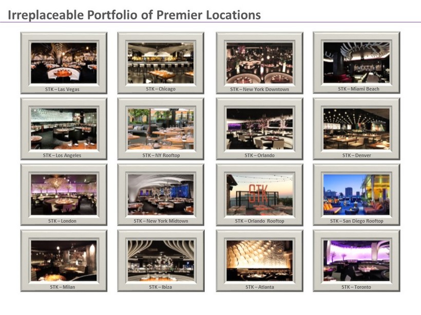 Irreplaceable Portfolio of Premier Locations 15 STK – Los Angeles STK – London STK – Milan STK – New York Downtown STK – Orlando STK – Atlanta STK – Miami Beach STK – Chicago STK – NY Rooftop STK – New York Midtown STK – Ibiza STK – Denver STK – San Diego Rooftop STK – Toronto STK – Las Vegas STK – Orlando Rooftop