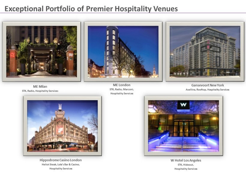 Exceptional Portfolio of Premier Hospitality Venues 27 ME London STK, Radio, Marconi, Hospitality Services ME Milan STK, Radio, Hospitality Services Hippodrome Casino London Heliot Steak, Lola’s Bar & Casino, Hospitality Services Gansevoort New York Asellina, Rooftop, Hospitality Services W Hotel Los Angeles STK, Hideout, Hospitality Services