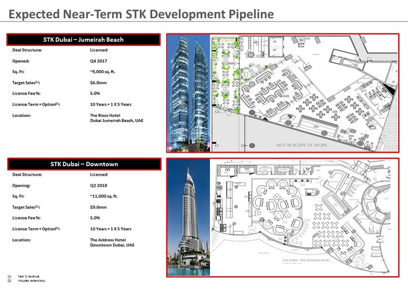 Expected Near - Term STK Development Pipeline 39 STK Dubai – Jumeirah Beach STK Dubai – Downtown Deal Structure: Opened: Sq. Ft: Target Sales (1) : License Fee %: License Term + Option (2) : Location: Licensed Q4 2017 ~9,000 sq. ft. $6.0mm 5.0% 10 Years + 1 X 5 Years The Rixos Hotel Dubai Jumeirah Beach, UAE (1) Year 3 revenue. (2) Includes extensions. Deal Structure: Opening: Sq. Ft: Target Sales (1) : License Fee %: License Term + Option (2) : Location: Licensed Q2 2018 ~11,000 sq. ft. $9.0mm 5.0% 10 Years + 1 X 5 Years The Address Hotel Downtown Dubai, UAE