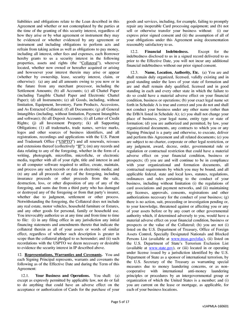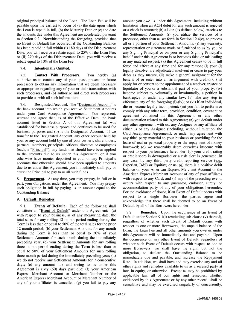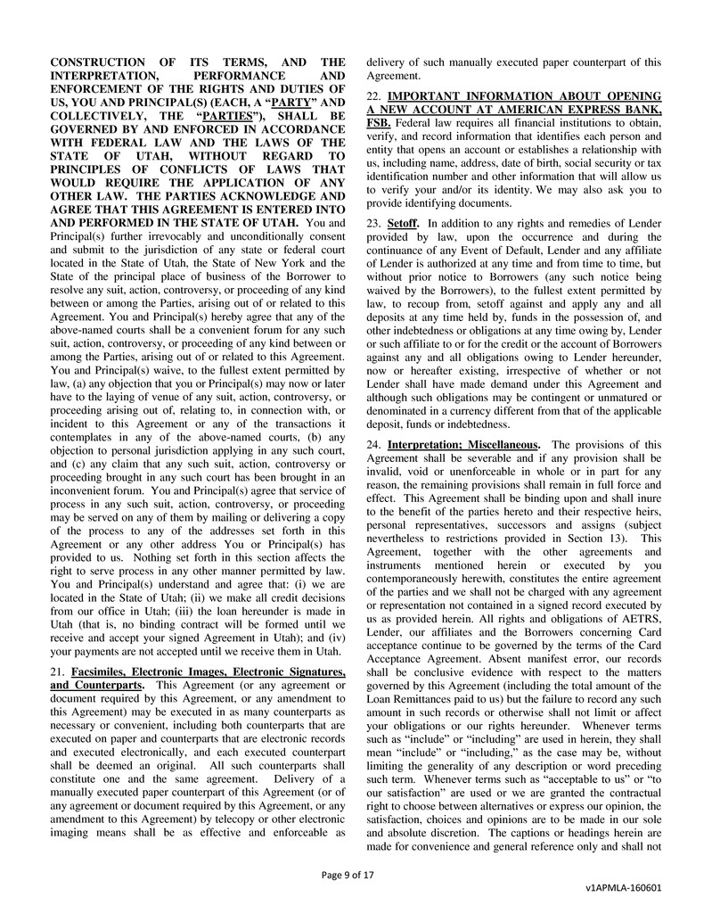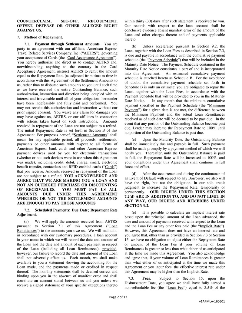 This Business Loan and Security Agreement (this “Agreement”) dated February 17, 2017 is between American Express Bank,