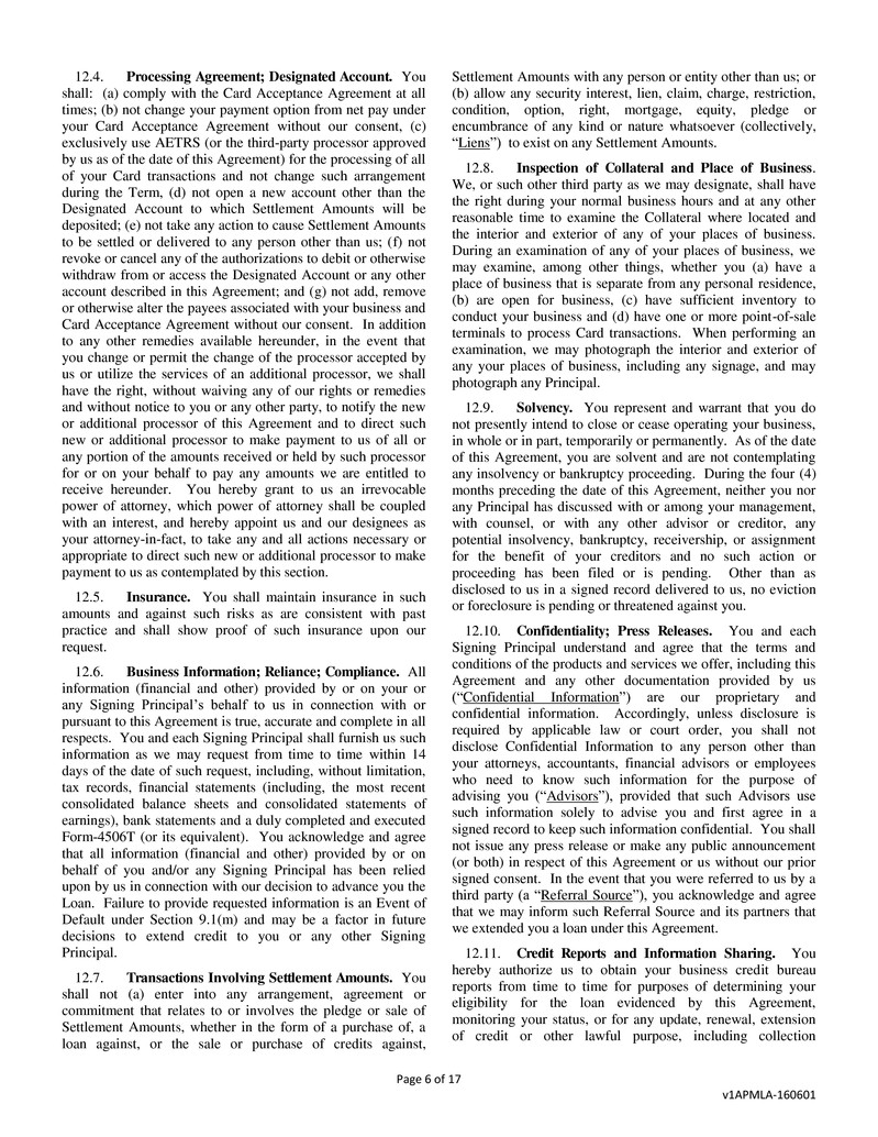 BUSINESS; AND (C) THIS LOAN IS NOT A “CONSUMER