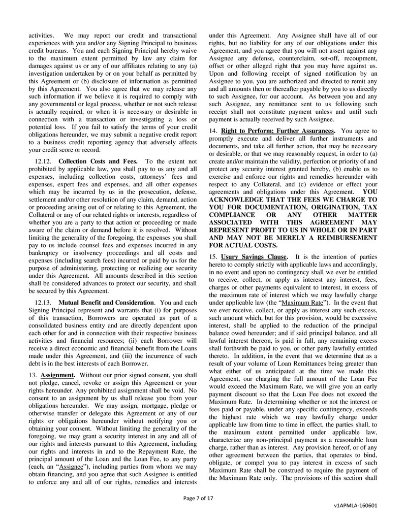 and “your” refer to Borrowers, jointly and severally. The