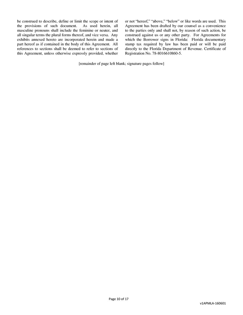 under this Agreement, at your election and with 10 days prior
