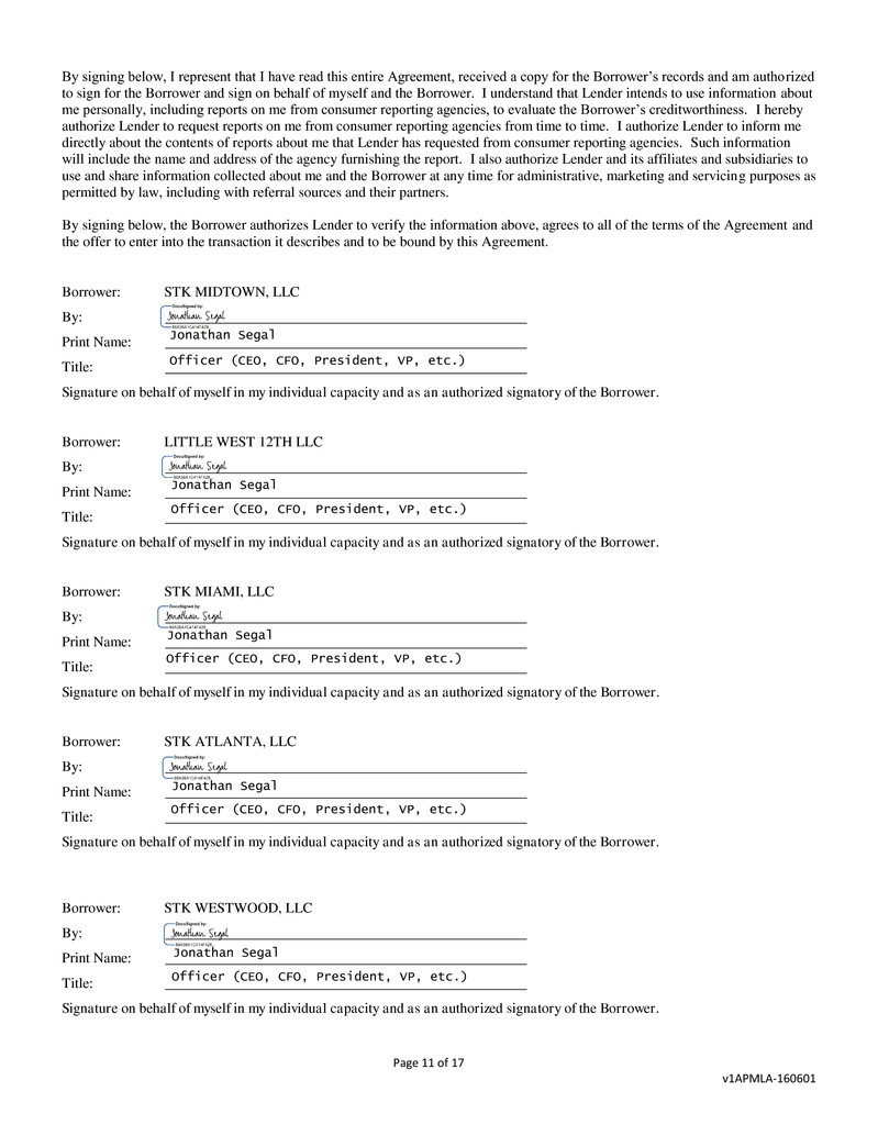 Borrower: STK MIDTOWN, LLC