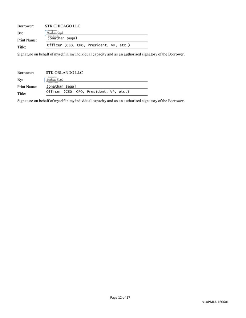 Borrower: STK CHICAGO LLC