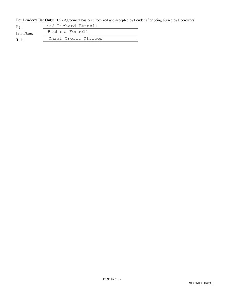 For Lender’s Use Only: This Agreement has been received and accepted by Lender after being signed by Borrowers.